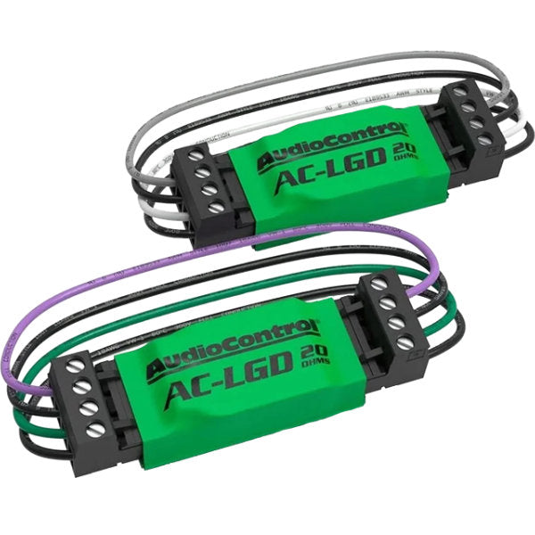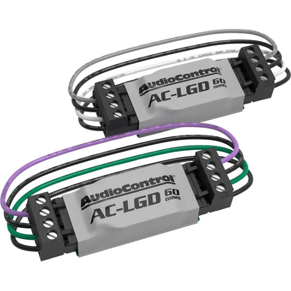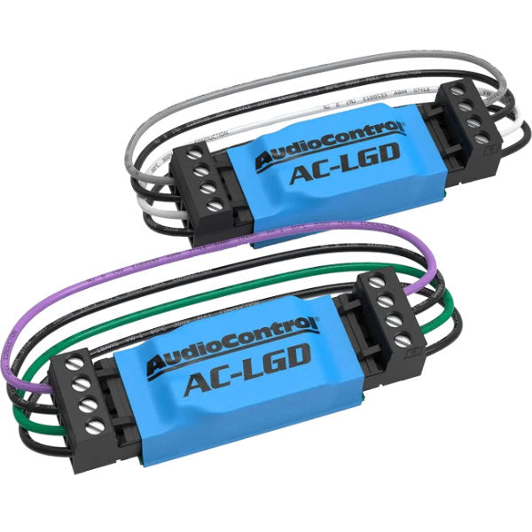 The LGDs come in pairs and can be easily connected to your AudioControl Factory System Upgrade product with pre-wired connectors. The LGD is installed between the factory speaker outputs and your line output converter or speaker level inputs on your amp or processor. Each LGD pair comes with standard wire colors for front and rear connections.